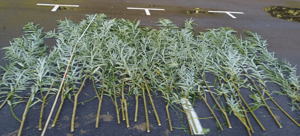 In September when the leaves still was attached the willow was harvested and had now grow up to 4m.